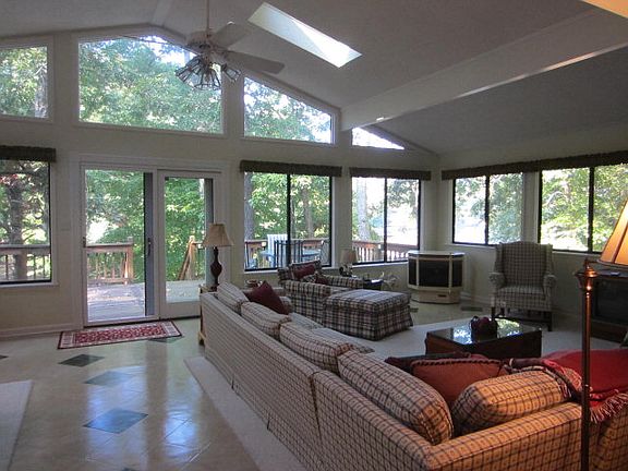 Exceptional Lake Gaston Property. Recently remodeled with completely new kitchen, large great room w/free standing fireplace and windows on 3 sides. Den has beautiful stone wood burning fireplace. Master suite expanded w/nice bathroom and large walk-in closet. 12x28 deck offers cool lake breezes and nice water view. 3 bay boat house w/lifts, gazebo, & storage room. Oversized detached garage w/full bath range, & refrigerator can be used for entertaining at large gatherings. 14.5 additional acres available & includes 5 bay garage w/full bathroom & sheds on the back and side. Perfect for a large family retreat or compound along with another 1 acre waterfront lot & dock permit.