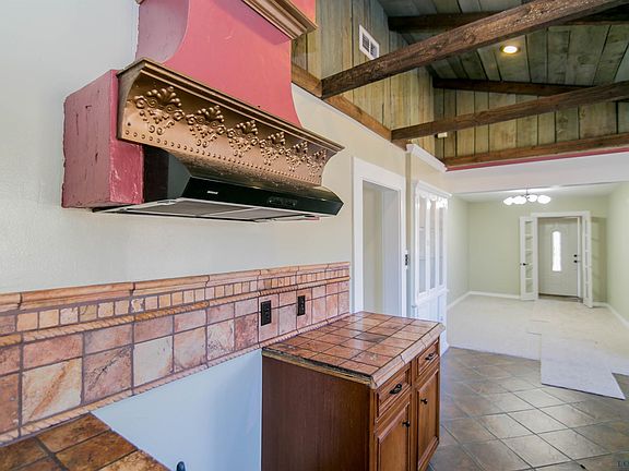 Charming cottage style retreat ready for your family in Hallsville ISD but only minutes from town! Main home features 4 bedrooms with 3 full bathrooms and updates throughout on almost 1 acre. Step inside to a spacious kitchen with bay window and breakfast nook all on slate tile flooring. Tons of storage space with unique, exposed wood ceilings and beams to give a classic touch throughout the home. Upstairs room could be used for playroom or bedroom with nice size closet and every child's dream with secret passage and attic access. Step outside and follow the deck around to the garage apartment and concrete safe room! Perfect area for mother in law suite or rent for extra income with full kitchen, living area, bedroom and bathroom. This property is one of a kind with so much character you must see to appreciate. Call today for your private showing, you will not want to miss this one!