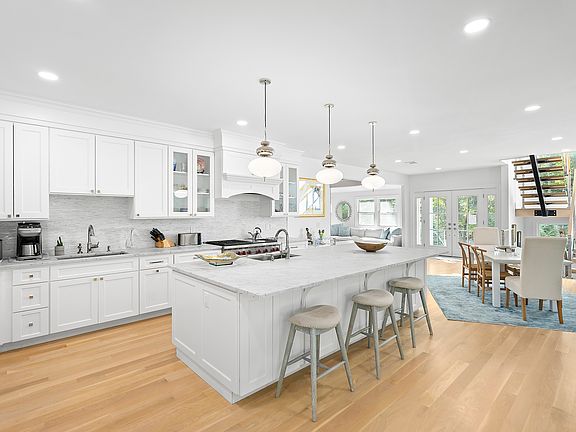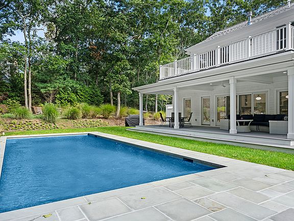 This home has been completely renovated and refreshed to be an entirely new tranquil escape. Located minutes to both Southampton and Sag Harbor Villages and beaches, on the ocean or the bay, it doesn't get any better. The exterior features a brand new pool, jacuzzi, fire pit and outdoor shower, perfect for entertaining guests or peaceful decompressing.The large covered deck and poolside patio are connected to the open interior and through sliding glass doors. These, along with the large custom windows drench the open floor plan in natural light all day long. Aesthetic is everything in this designer-finished interior. The first floor features 2 bedrooms and bonus room, leading into an open living room and dining room. There is a scenic porch right outside the living room perfect for taking in the natural surroundings. Also featured is a brand-new stainless kitchen with marble countertops. The second story primary suite includes walk-in closet, fireplace and primary bathroom with free-standing tub and shower. The primary suite also features its own private balcony, overlooking the back yard and pool area. Professionally maintained landscaping complements every feature of the home and its grounds.