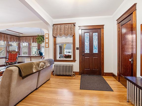 Quality and charm await you! This delightful 3-bedroom, 2-bath bungalow is nestled in a residential neighborhood and has been meticulously maintained. It features a captivating blend of hardwood and tile throughout. The kitchen boasts Italian tile countertops, complemented by a thoughtfully positioned island with dishwasher. Enjoy the convenience of a one-car garage, as well as a private sun porch & back yard patio. The home has been recently re-wired and includes a sizeable workspace in the basement. Beautifully landscaped at every turn. Be sure to schedule a visit to see this hidden gem soon!