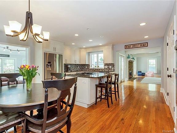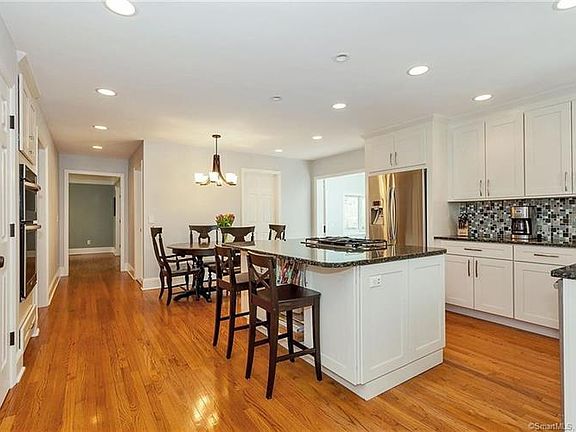 AT LAST!! PRIME SOUGHT AFTER LOCATION!! Chic & stylish Colonial just a mile from Main St. Extensively renovated & impeccably maintained inside & out! Interior offers a serene color palette & hardwood flooring throughout. Eat in kitchen features crisp white cabinetry, granite center island, newer appliances, pantry & gas cook-top! OUTSTANDING versatile floor plan allows you to host gatherings in several entertaining spaces inside & out. Over sized 27 x 22 Great room w/massive fireplace & French doors leading to an inviting patio & built in grill that adjoins heated in ground pool & spa!! Extensive new landscaping $$$ includes many trees removed, plantings, new stone wall & fencing offering room for all to enjoy!! Inviting sun room w/custom doors overlooks serene rear yard. Elegant dining room with formal fireplace, den/office & living room complete the main level. Upper level features a luxurious master suite w/abundant closet space, fireplace, full bath w/steam shower & whirlpool bathtub. There are 3 additional bedrooms & a full bath. Many outstanding features include custom closets, oil rubbed bronze hardware & newly installed Smart House Integration! LL features newer carpeting & offers a great space for a playroom. Additionally an exercise room has just been finished. Freshly painted inside & out! Outstanding curb appeal sited on 1.1 acres makes this home your year round oasis! Outstanding south side location with a great NYC commute!! Enjoy living in CT's #1 town!