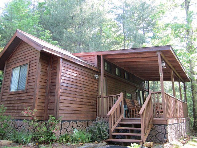 2000 Chariot Park Model with large covered deck located on .40 acre private lot. All furniture included. The home has a sleeping loft and paved drive. Holly Ridge is located above Holly Cove RV Resort.