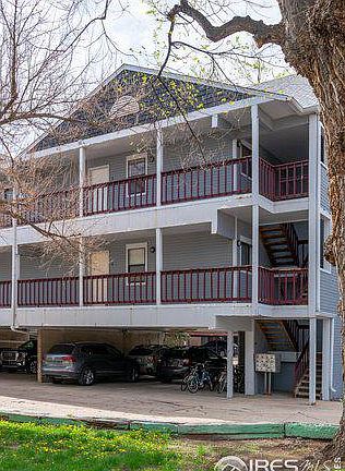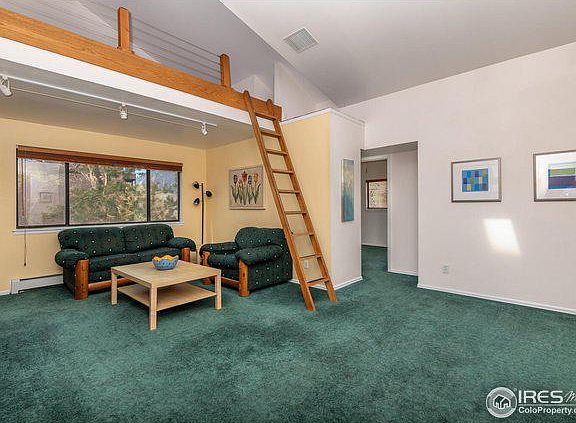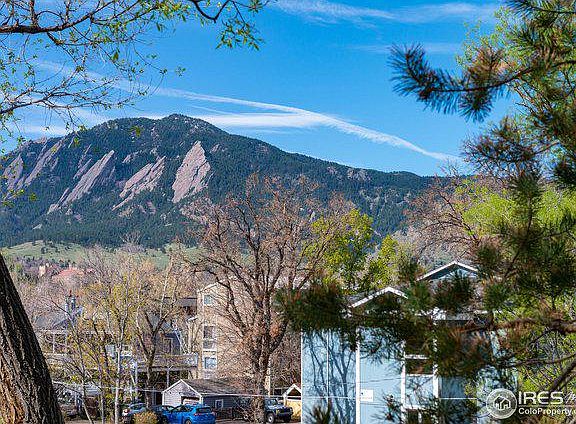 Delightful 3rd floor corner unit with Flatirons views! Open floorplan with 2 bedrooms & 2 full baths separated by large living room with fireplace. Vaulted ceilings, skylights & unique loft/study area. Private balcony. Stacked washer/dryer. Storage unit. 2 car carport. Great central Boulder location, close to Pearl, 29th Street, & CU campus. Surrounded by cottonwoods gives the feeling of being in a tree house. Private HOA. Fees include partial heat, water, snow removal, exterior maintenance. New siding, exterior paint, water lines, and solar powered heating / cooling systems to be installed this summer.