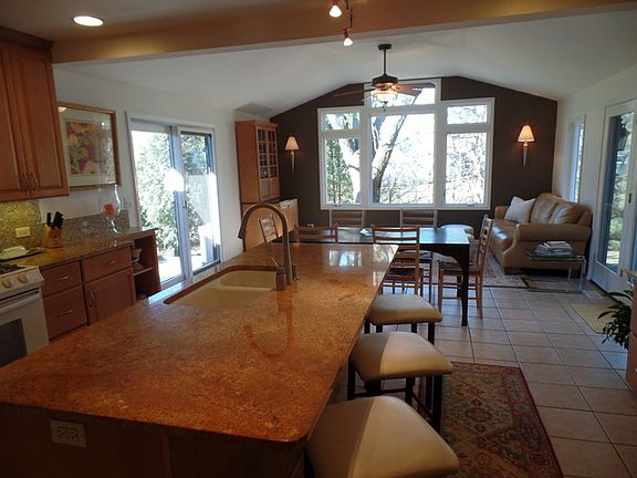 Beautifully done 2400 sq ft home with kitchen and great room addition by Normandy Builders. 42" custom cabinets w/ granite and gorgeous backsplash. Walk to high school and park. 1 yr old roof w/ architectural shingles. Furnace, windows, and siding all replaced at the same time as the kitchen/addition. Water htr 2 yrs old. 2 brick paver patios to enjoy a peaceful wooded back yard. Dining room has been used as office.