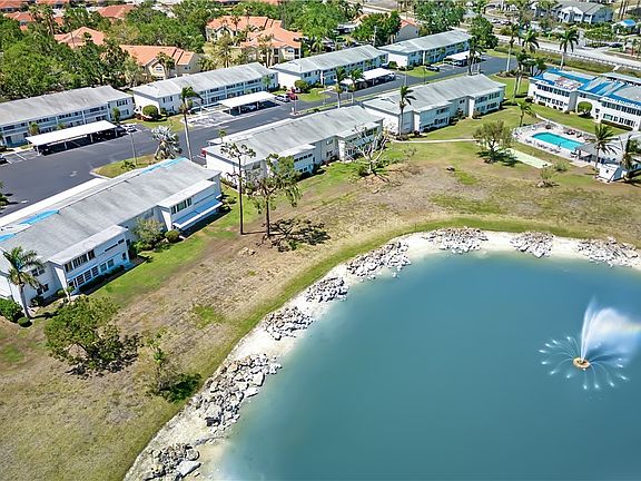 Welcome to your new oasis in a quiet and serene 55+ community! This quiet community boasts some of the lowest HOA fees you'll find, making this the perfect place to call home. This spacious and inviting 2 bedroom, 2 bathroom TURNKEY condo boasts over 1300+ square feet of living space with no detail overlooked. The fully renovated kitchen and bathrooms feature gorgeous white shaker cabinets, sleek stainless steel appliances, continuous new flooring and modern finishes throughout. Experience peace of mind knowing that this unit is equipped with impact resistant windows and a new roof is coming in just 6 weeks (No upcoming assessments from Hurricane Ian!). A/C 2018. The oversized laundry room provides ample storage space with barn door entry. Take advantage of the abundance of natural light in every room, and revel in the stunning lakefront fountain view right from your living room. Your own covered parking spot is just steps away from your front door! This home is perfect for those who love an active lifestyle with proximity to Brooks Community Park (Pickleball anyone?), Lakes Park, Bell Tower Shops and Movie Theatre, and an array of dining options. Schedule your showing today!