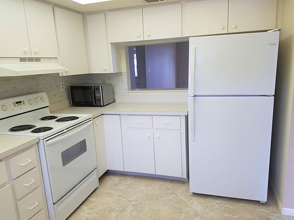Nicely remodeled 2 bedroom, 2 bathroom condo on the first floor. Porcelain tile throughout condo. Unit was just freshly painted. Washer and dryer in unit. Unit has hurricane impact resistant windows. Water and garbage included in rent. This is a 55+ community, at least one person must be at least 55 years old and no one under the age of 18. No smokers. No pets. Application fee $100 plus $50 per tenant for the background check. Annual lease only. Excellent location, close to shopping, restaurants, and entertainment. Community amenities include heated swimming pool and clubhouse. There is 2 designated covered car port spaces and another designated owner parking spot in front of the unit, plus guest parking.