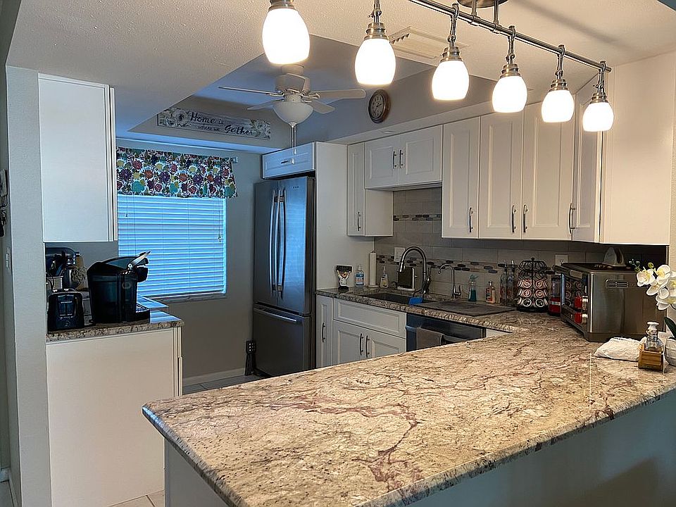 “ Real Estate Agents Welcome!” A fantastic opportunity to own this gorgeous 1st floor, 2 bedroom, 2 full bath condominium. This 55+ community is a gem, centrally located with easy access to Rsw airport, restaurants, shopping, theatres ( including Barbara Mann theatre), parks, hospitals, stadiums, movie theatres, golfing, and beaches. This fabulous pool front condo features 1,400 sq. ft. Of open, bright living space. From the moment you walk in, you will be greeted by the openness & inviting feeling. This condo offers a totally remodeled, upscale kitchen which comes equipped with all new high-end Jen-Air stainless steel appliances ( stove is induction), beautifully marbled granite countertops, sturdy custom made soft closure white cabinets & drawers ( with 6 convenient pullouts for easy access), extra-large franke sink with garbage disposal, new tile backsplash, new track light over the island, & a new ceiling fan. Walk down the hall to the newly remodeled guest bathroom which includes a large beautiful vanity, wood-style tile floor & exquisite Italian decorative tile around the tub. Both the guest & master bedrooms are good sized rooms & offer full-size bathrooms. The kitchen overlooks the dining & living room. The spacious sunny lanai has new impact windows and a new rear entry door with a mini blind inside the impact window. There’s also a new decorative glass front entry door. The condo was freshly painted throughout and also has easy to care for ceramic tile. There’s a new 2.5 ton 14 seer Trane A/C unit & furnace. Rarely will you find a condo that offers 2 covered carports & 1 assigned parking spot in front of the condo. There’s also plenty of guest parking as well. The condo has a clubhouse, community pool & shuffleboard court. LakeLawn is very well maintained and has a very low HOA fee which includes landscaping and water. Act soon...These condo’s go “Quick”! If Interested ,Please contact JoAnn @ 203-526-9325
