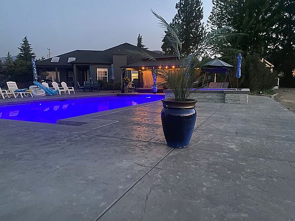 Equestrian Dream Ranch. Oregon horse property has the WOW factor.Stunning single level 2442 sf 4 bed/2.5 bath on 3.86 irrigated acres. Stucco exterior, light filled & inviting with soaring 12' ceilings, granite, kitchen/great room w/fireplace & lots of windows to enjoy the city lights & MT views all in a beautiful country setting. Formal living/dining rm & kitchen nook open to large covered patio. Gorgeous master+ a split floor plan. 1,200 sf 3 car garage/shop. 9,216 sf show barn with 60 x 96 covered & lighted arena. Barn has lounge/office, feed & tack room, bathrm, washrack w/hot water, fly spray system, rubber matting, automatic waterers & more. Fenced & cross fenced into 7 pastures w/sprinkler irrigation. RR00 zoning allows for business. Buyer to do due diligence