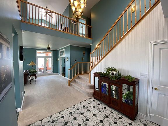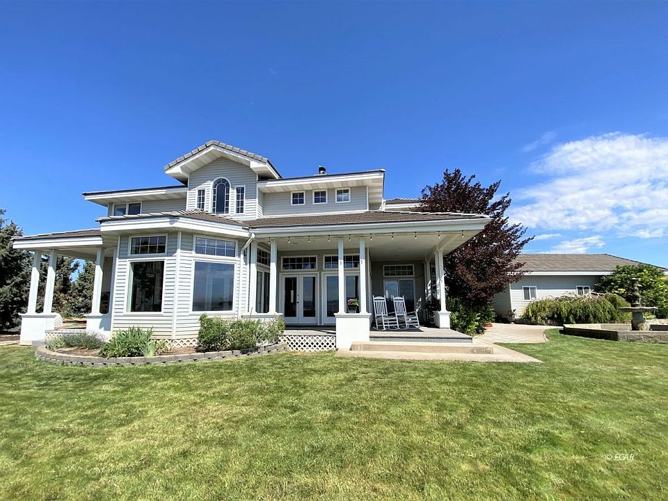 Roomy Hilltop Retreat: 4,438-square-foot home sits on 2.5 acres and boasts unobstructed, panoramic views of city lights, Ruby Mountain sunrises, spectacular sunsets, and stars. Four bedrooms, 3.5 baths. Additionally, a separate dining area, a family room, bonus room, and sunroom on the main level. The second story has a home office and library. A fully finished basement features a spacious main room with numerous possibilities. This home is a custom design, created with open spaces that use natural light and provide views. Vaulted ceiling with skylights runs the full width of the house. This single-owner home upgraded significantly: a concrete roof, steel siding, premium gauge aluminum soffit, quartzite countertops, dual heater/ AC system,10-foot ceilings with transoms, wrap-around windows, and Trex porches to name a few. The kitchen offers plenty of countertop space, a double oven, and an island. There is a separate dining area, living room, reading/bonus room, and sunroom. The 21 feet of built-in cherry library bookshelves are a reader's dream. This home has so much to offer and we couldn't list every wonderful detail. You will have to see it in person to take it all in.