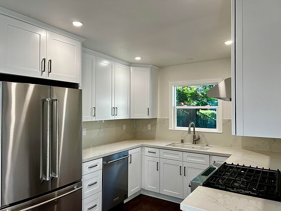 Welcome to this stunning home in the highly desirable White Oaks neighborhood! Filled with natural sunlight, this home has style and charm, with a brick walkway leading to an inviting front porch. Comfortable floor plan includes a formal entry, a spacious living room with a cozy fireplace, and a formal dining room. Remodeled eat-in kitchen features quartz countertops, soft-close cabinetry, and stainless steel appliances, with access to a charming brick patio from both the kitchen and living room. The spacious primary bedroom boasts two closets and an elegantly remodeled en-suite bathroom with a custom stone shower, while the hall bathroom offers a beautiful tub/shower combination with designer tile. A versatile third bedroom adjacent to the kitchen can serve as a family room or home office, with a sliding glass door opening to a pergola-covered patio, gazebo, and lush, mature landscaping. Additional highlights include freshly painted interior, recessed lighting, beautifully refinished hardwood floors, new energy-efficient furnace, and an oversized two-car garage with a loft, half bath, and an EV charging system. Enjoy living in this sought-after neighborhood with convenient access to downtown, major freeways, and CalTrain. Within walking distance to White Oaks Elementary School and with easy access to the charming downtown area, which includes fine dining, boutiques, coffee shops, parks, a library, and a community center, this truly is the perfect place to experience the City of Good Living! Some photos are virtually staged. Listed by: Diana Walsh, Broker Walsh Properties DRE# 01251700 One-year lease. Gardener services are included. Tenants are responsible for utilities, cable, and internet.