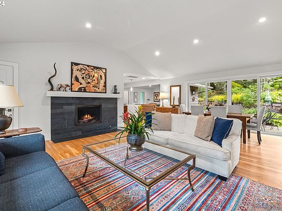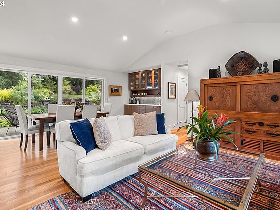 Charming one-level home with vaulted ceilings and large windows on a spacious .42-acre private lot in the Palisades neighborhood of Lake Oswego. Beautiful upgraded finishes throughout the home including a brand new furnace and air conditioning unit. Located close to Lakeridge High School, Palisades Elementary and the new recreation center that is currently being completed. The home is oriented with views to the gardens including a patio with an outside gas fireplace. The home is a blend of elegance and functionality with an open floor plan ideal for everyday living and entertaining. The kitchen is equipped with high-end appliances including a SubZero refrigerator, Wolf range and oven, custom cabinetry, a pantry with prep space, and an island for casual dining. The dining room has a built-in wet bar, ideal for hosting guests. The detached 200 sq ft. studio is powered for most any hobby and is cozy all winter long with an efficient cadet heater and a pair of sliding doors to let the fresh air in. This home seamlessly combines charm and comfort with practicality, set amidst lush gardens that create a serene living space.The landscaping was designed by a master gardener and is filled with fragrant flowers and natives, all pollinators drawing butterflies and hummingbirds. Created for year round interest and wildlife sustainability the back yard utilizes native rock for the garden walls.