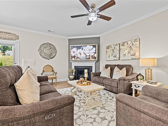 A catalog worthy, better than new construction home in the heart of Kernersville. From builder grade to BOUJIE. Enjoy all the new updated luxurious lighting throughout and the amazing back patio area recently put in & backyard landscaping. Everything "extra & fabulous" in this gorgeous home. Covered porch as you enter home, step inside & take notice of extra wide foyer w/ tall ceilings in home. Offering 1800+ sq ft, 3 bdrms, 2 ba & spacious bonus w/ closet. Open concept living, kitchen offers gas stove, subway tile, granite, 2 toned cabinetry, island doubles as storage, eat at bar & pantry. Living room cozy w/ gas fireplace & large closet. Primary generously sized w/ vaulted ceilings, ensuite has dual vanity, shower, linen & large walk-in closet. Split floor plan w/ other 2 bdrms & ba at front of home. Nice laundry room. Backyard is absolutely gorgeous oversized patio built to impress. Right in the heart of the Triad, better than new, don't miss this one. Meticulously cared for.