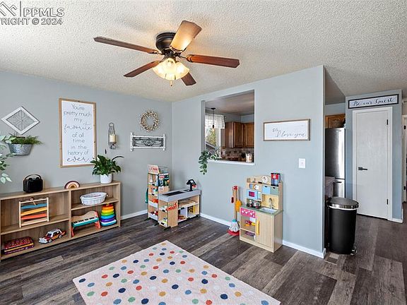 Welcome to this tastefully designed home with a seamless integration of contemporary elements that evoke a sophisticated ambiance. Enhanced by modern influences, this property excludes a chic and refined aesthetic, offering a harmonious blend of textures and a subdued color palette throughout its four bedrooms, two bathrooms, and two-car garage. The home's interior is thoughtfully curated, featuring new paint, a new staircase, luxury vinyl plank flooring, and a redone upstairs bathroom, while strategically placed windows invite natural lighting throughout, fostering an inviting atmosphere that resonates in each space. The gourmet kitchen is a focal point, boasting an abundance of cabinetry, stainless steel appliances, tile backsplash, pantry, and expansive countertops, seamlessly transitioning into the formal dining area and family room, ideal for both everyday living and entertaining. The owner's suite epitomizes comfort and luxury, providing a tranquil retreat for relaxation and rejuvenation. A full bathroom, linen closet, and another bedroom complete the upper level. Meanwhile, the lower level of the home offers additional versatility, with a recreational area providing ample room for leisure and gatherings, built-in shelving, accompanied by two bedrooms, a laundry facility, and supplementary storage space. Conveniently situated with easy access to a plethora of amenities including shopping, dining, entertainment venues, and major transportation arteries such as I-25 and the Powers Corridor, this property is minutes from military installations such as Peterson AFB, Fort Carson, and Schriever AFB. This home epitomizes both luxury and convenience presenting an unparalleled opportunity for discerning homeowners seeking a distinctive living experience.