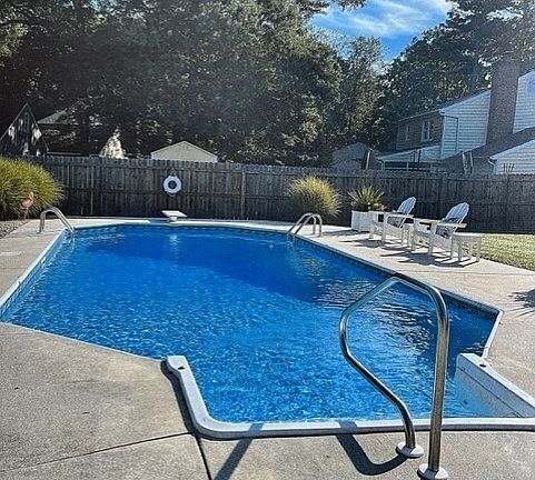 POOL TIME STARTS NOW! GORGEOUS INGROUND HEATED POOL with CEMENT APRON and COMPLETELY MOVE-IN READY RANCH HOME! Need we say more? Yes we will! This home is situated at the edge of a cul-de-sac on a quiet street and comes with a fabulous carport which could be enclosed as a garage, privacy fenced backyard with a spectacular two-tiered deck, comfortable screened porch, large living room/dining room combination, family room with a brick fireplace & gas logs, primary bedroom with ensuite bathroom, and two additional bedrooms and a bathroom. This well-maintained home has Anderson windows, a dimensional shingled roof, and FRESH PAINT AND NEW CARPET AND LVP FLOORING! Walk to Colonial Heights High School, minutes to Fort Lee, and 25 minutes to downtown Richmond!
