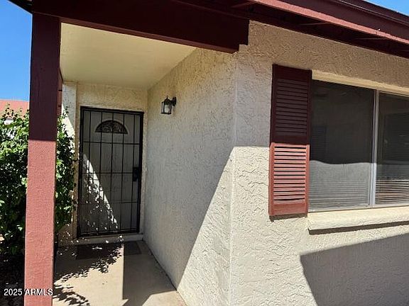 In a prime location, this charming ranch-style twin home in the heart of the East Valley. Close to the 60, minutes to excellent dining, parks, and golf courses. Comfortable living room and formal dining room with tile flooring. Kitchen boasts hardwood cabinets, built-in appliances, & backyard access. Cozy backyard is perfect for outdoor gatherings. Don't miss this one!