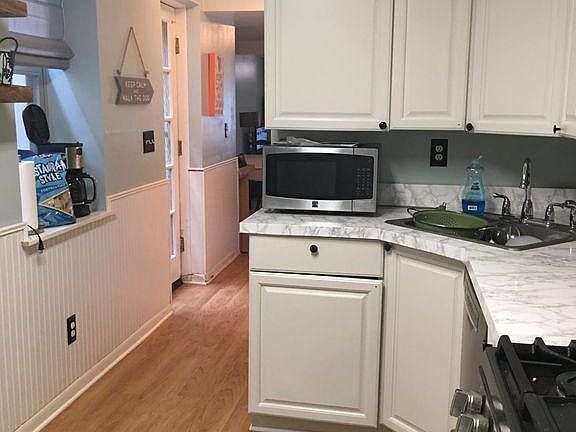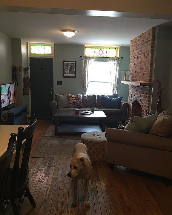 Delightful row house lives larger than its footprint, with a spacious, open living/dining room (measures 24 x 11.5); efficient kitchen with wainscoting; convenient main level half bathroom; surprisingly large (11 x 16) main bedroom with cathedral ceiling and wood-burning fireplace; second bedroom ideal for study or occasional guests; and a full-size washer and dryer on the bedroom level. There is a lovely second level deck, lush with planters and shaded by a neighbor's tree, plus a patio under the deck. Walkscore.com rates this a 96, "Walkers Paradise" -- walk to Fells Point and Harbor East hot spots, Patterson Park and the waterfront. Charm abounds! Owner pays for trash and sewer, tenant pays for electric and gas.