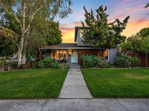 Welcome to a beautifully reimagined retreat in the coveted Rose Garden/Cory neighborhood. Where modern comfort meets the soul of California living. Set on a rare 9,000+ SF corner lot with over 2,600+ SF of thoughtfully designed space, this home was crafted for connection, relaxation, and style. Step into a sunlit open floor plan anchored by a dramatic great room with vaulted ceilings, exposed beams, skylights, and a cozy fireplace. Flowing seamlessly to a backyard that feels like your own private resort. Lounge by the shimmering pool, unwind in the jetted spa, or entertain beneath the palms as music drifts through the evening air. The chefs kitchen dazzles with quartz counters, a large island, sleek cabinetry, skylight, and premium Samsung, Bosch, and Magic Chef appliances. Designer baths, hardwood floors, solar panels, central AC, and a dedicated laundry room with storage complete the picture. Just moments from the historic Rose Garden, The Alameda, Santana Row, Valley Fair and Santa Clara. This is easy, elegant, everyday living at its finest.