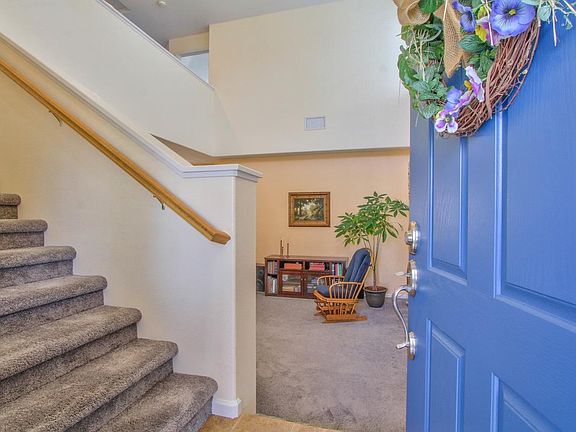 Welcome Home to this well appointed and lovingly maintained Creekbridge home with desirable floor plan. Enjoy 3 bedrooms and 2.5 baths and an upstairs loft area. Ample Kitchen/family room area with island, breakfast nook, newer stainless steel appliances and family room fireplace. Living room/dining room is light and bright with soaring ceilings and perfect for entertaining family and friends. Enjoy master suite with double vanity, walk in shower, soak tub and large walk-in closet. Inside laundry room, two car garage. Newer flooring includes carpet, laminate and tile. Backyard is private, inviting with fruit trees and room to romp.