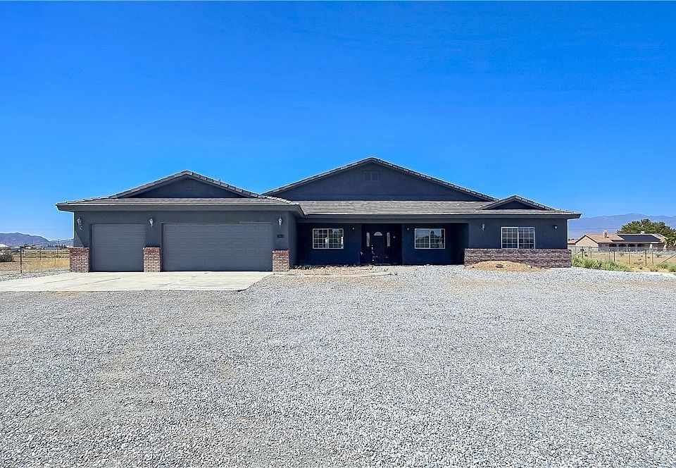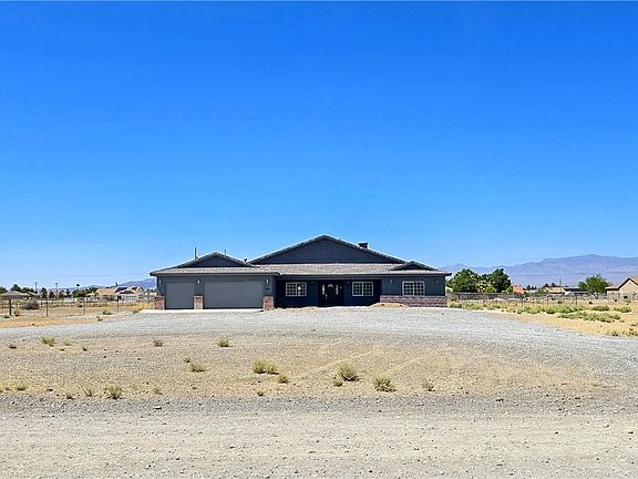 Truly unique semi-custom estate on over 2.3 acres with RV parking! As you enter the home, you are greeted with a dramatic entry with vaulted ceilings and open floor plan. Chef's kitchen is a masterpiece boasting custom cabinets, granite counters, island, breakfast bar, dining nook, stainless appliances and pantry, overlooking the family room with a stone wood burning fireplace great for entertaining. Formal dining room. Laundry room with cabinets for extra storage. Window coverings throughout. 4 bedrooms and 3 bathrooms. The primary bedroom is showcasing the primary bath with a huge walk-in closet, soaking jacuzzi tub, shower, double sinks and makeup vanity. Oversized 3 car garage. Breathtaking views of Mount Charleston from your backyard!