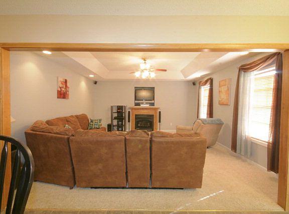 Split floor plan home on Cul-de-Sac. Large covered back porch off master bedroom and dining area. Large great room with gas log fireplace. Master has walk in closet and private bath with jetted tub, walk in shower, double sink vanity and separate commode room. Kitchen is open with cathedral ceiling and center island with sink and eat at bar. Second and third bedroom share a hall bathroom.