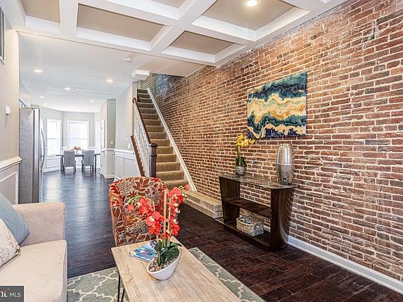 EXPANSIVE NEW RENOVATION WITH 4 FINISHED LEVELS AND 2 CAR PARKING! Move right into this newly renovated home featuring wood floors, wainscoting, and exposed brick throughout the main level, an inviting living room with coffered ceilings, gourmet kitchen with granite counters, ss appliances, & tile backsplash, a separate dining nook, main level half bath, upper levels with 4 generously sized bedrooms, 2 full baths, and desirable bedroom level laundry, a fully finished basement with rooms that could be enclosed to make additional bedrooms and a 3rd full bath, and 2 car fenced in parking! Located close to MICA, UMMC, and downtown Baltimore!