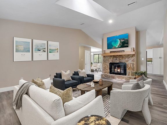 NEWLY renovated, UNIQUE and very CHIC home in Tallahassee, overlooking an impressive .31 acres of greenspace, with countless NEW upgraded finishings and centrally located in classic Holly Hills, this split floor plan stunner lives extremely large inside and out off High Road, and is minutes from eclectic eateries, area Universities, Commonwealth Business District and Downtown! Enjoy instant equity in this 4-bedroom, single-story beauty, with an abundance of natural light, boasting soaring ceilings PLUS stylish bonus room/office! Turn-key and ready for new owners, with luxurious finishes, including NEW impressive quartz countertops, NEW cheery white cabinetry, NEW farm sink, a Whirlpool black stainless refrigerator, NEW windows, and NEW floating luxury floor planks throughout plus four additional boxes of new flooring, featuring gray and brown tones for any preferred interior color palette, this unique home is sure to impress! NEW crisp 2" white faux wood blinds, NEW interior and exterior neutral-toned paint, NEW light fixtures, brand NEW water heater (2024) and massive walk-in rain shower with rich black hexagon tile, double vanity and walk-in, plus second closet in the primary suite! This private, naturally adorned oasis boasts a park-like exterior and an interior stone facade fireplace, prewired for your big screen TV! Enjoy quiet coffee mornings with no one but nature on your refreshed, oversized back deck and expansive backyard overlooking greenspace, not neighbors. Interior washer/dryer combo, fantastic workshop off double carport with adjacent parking pad, and fully fenced backyard. Seller offering a seller paid whole home warranty from Old Republic! Roof (July 2014). NO flood zone present. New land survey available. Room measurements approximate. Buyer to verify. Dining area will comfortably fit an 8-top round or rectangular table. Some virtual staging. Please remove shoes in inclement weather.
