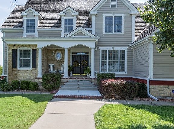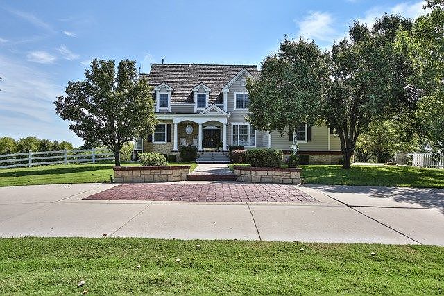 Rare Opportunity for 10 acres in Andover Schools, Wichita taxes, and close to everything! A CLASSIC BARN WITH INDOOR BASKETBALL GOAL WITH 2 HEATED HORSE STALLS, LOFT AREA, WORKSHOP AREA, AND APARTMENT WITH A LARGE ROOM, FULL BATHROOM, AND KITCHEN. The outdoor fireplace with kitchen will extend your season of the beauty of Spring and Fall. Outside your windows enjoy breathtaking views of the lake as the seasons change each bringing new light colors and creatures. This sensational 1 1/2 story features a gated driveway for added privacy, lots of mature trees, hardwood floors, beautiful living room that welcomes every guest and is complete with vaulted ceiling, recessed lighting, built-in bookcases, formal and informal dining areas, mud room with a shower, sink, extra cabinets, and pantry. Cooking your meals will be a pleasure in this fabulous granite kitchen with Wolf built-in induction range, KitchenAid dishwasher, KitchenAid double oven, island, breakfast bar, and recessed lights, main floor master suite with attached office and private bathroom with tile flooring, his and her sinks, soaker tub, tile shower, private commode, and walk-in closet with built-ins. The second level features two spacious bedrooms with a jack and jill bathroom, and a loft area with built-in desk and a hidden laundry chute. Entertain with ease in the finished basement complete with family room with fireplace and built-ins, game room, ample storage space, and large laundry room with built-ins. Sit back with your morning coffee and daily newspaper in one of the two enclosed patio areas with large windows, heat/air, and wired for cable and speakers overlooking the pond. YOU WILL ENJOY SPENDING TIME IN THIS MAGNIFICENT BACKYARD COMPLETE WITH STOCKED POND WITH PRIVATE DOCK, INGROUND POOL, GARDEN AREA, WELL THAT IS HOOKED TO SPRINKLER SYSTEM AND GARDEN. Truly a must see to believe.
