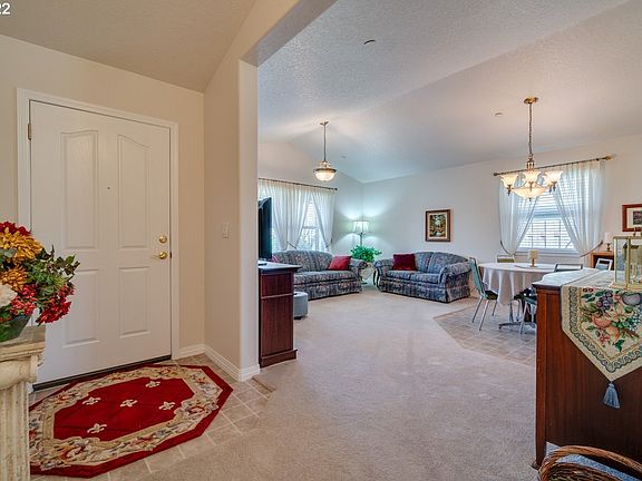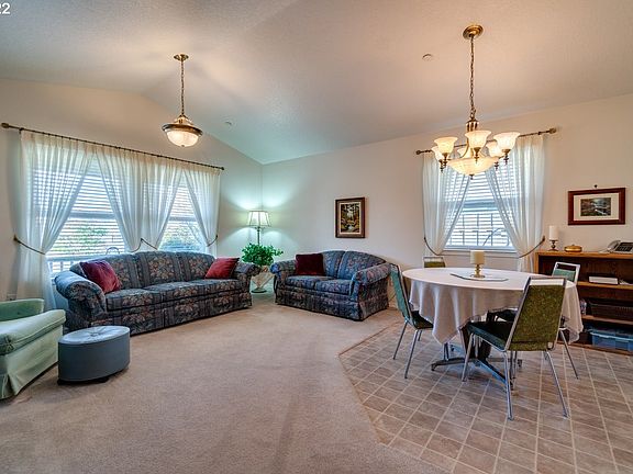 Ideal single level home in Newberg's desirable 55+ community. Open floorplan with vaulted living room and plentiful natural light. Vaulted primary bedroom with spacious walk-in closet and bathroom suite featuring a walk-in shower. Versatile auxiliary bedroom can be used for guest space, home office or hobby room. Sliding doors lead to the back patio. Tool shed for added storage and plenty of yard space for gardening. Lovingly maintained by the same owner since it was built in 2005.