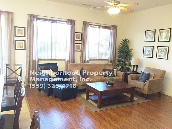 Clovis Unified School District Bud Rank Elementary Granite Ridge Middle School Clovis North High School This 3 bedroom home is located in the prestigious Harlan Ranch community. Just steps away from multiple parks, walk-ways, and Bud Rank Elementary School, this home offers an ideal location. Enjoy a large community pool, multiple BBQ and seating areas. Featuring wood flooring throughout, a bright open floor plan, tall ceilings, canned lighting, quartz counter-tops, and a formal dining-room. The back yard has been fully landscaped to include stamped concrete, a grass area, a garden planer, trees throughout, and a large deck/sitting area. HOA INCLUDED. LANDSCAPING INCLUDED! Neighborhood Property Management Owner pays for HOA and landscaping. Renter responsible for utilities and renter's insurance.