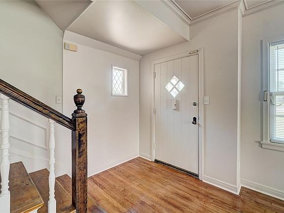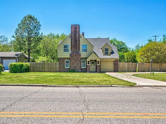 Beautiful 1938 home with many renovations to bring back the original elegant charm. The tudor style exterior, and the large front yard with a circular drive capture you at first glance. Step into the living area w/refinished original hardwood floors, Gas fireplace and decorative moulding on the walls. The formal dining room has the original chandelier along with an old telephone niche. The kitchen has been updated with grey cabinets, granite counter tops and new appliances. The breakfast room is a one-of-a-kind with a curved wall and glass block windows. There is a separate laundry room in the garage. A full bath is also on the first floor. The second floor has all concrete floors, 3 large bedrooms with tons of natural light. New carpet throughout. Cute pink retro bath with updated vanity and fixtures. A balcony off the one bedroom gives you a great view of the huge fenced in back yard. First floor interior walls are brick and stucco. See attach for write-up on home in 1979.