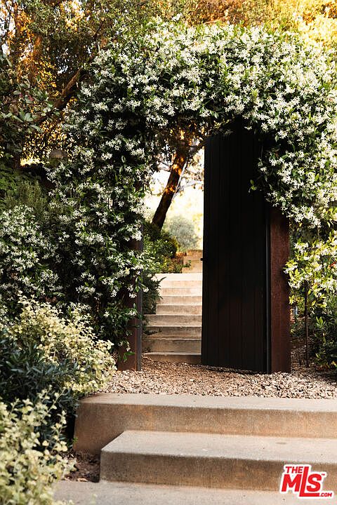Tucked behind gates at the end of a quiet cul-de-sac in lower Mandeville Canyon, this Architectural Digest-published home offers a rare combination of privacy, character, and expansion potential in one of Brentwood's most desirable neighborhoods. Set on .68 acres of sun-drenched, beautifully landscaped grounds, it's a private retreat just minutes from the city's best. Extensively renovated in 2021, the home includes three bedrooms, three bathrooms, a large den, and a living room that opens effortlessly to the outdoors. The interiors blend California and Japanese influences with a minimalist sensibility - polished concrete floors, an open layout, and abundant glass doors that frame the surrounding greenery and invite constant connection to the outside. Thoughtful details include natural materials, mosaic tile backsplashes, and a Hinoki wood Zen Bathworks soaking tub. The chef's kitchen is anchored by a built-in coffee station and Miele appliances. Outdoors, stone paths wind through mature oak and olive trees, organic garden beds, and vibrant landscaping. A designer-built chicken coop, firepits, and generous dining areas create distinct outdoor moments for gathering or unwinding. A detached structure offers an excellent opportunity for a guest house or ADU, and the oversized lot supports further development. With its covered pool and spa and cohesive design inside and out, this home is a rare offering - an intimate, design-forward home in one of Brentwood's most sought-after enclaves.