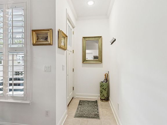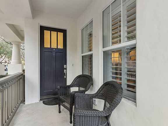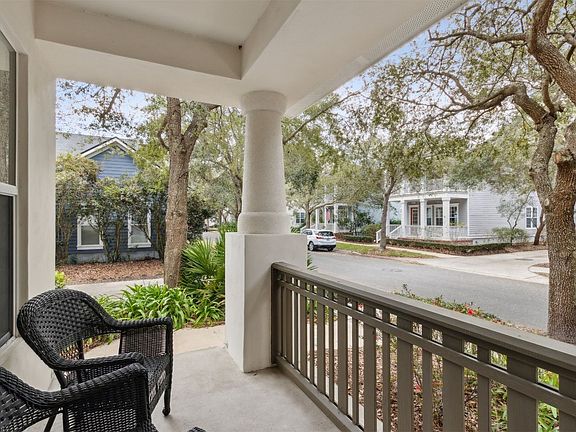 The best of Amelia Park comes to life in this sunny, first floor end-unit condo. This is ONE of only four FIRST FLOOR END UNITS in the condos. The charming front porch provides the perfect spot to relax and converse with neighbors. Extra windows provide an abundance of natural light in this beautifully appointed unit with plantation shutters throughout. The living room and dining room connect seamlessly to the updated kitchen with white cabinets, a stainless steel refrigerator, stove and microwave and under cabinet lighting. Kitchen base cabinets are equipped with roll-out shelving for easy storage. Oversize closet next to the kitchen has been configured with top-to-bottom shelving to serve as a pantry. The bright, sunny kitchen has french doors to access a side porch. The garage has epoxy flooring, overhead Safe Rack storage, a storage closet and a separate sink and cabinets for even more storage. Amelia Park embraces the philosophy of traditional neighborhood design (TND) with miles of sideways, garages in the back of the property, and an abundance of beautiful, mature trees. There is no other community on Amelia Island like Amelia Park.
