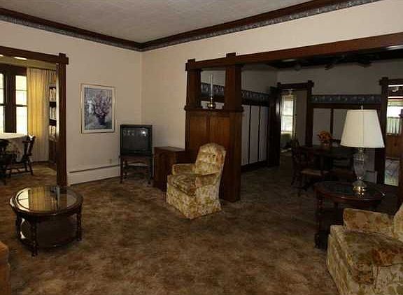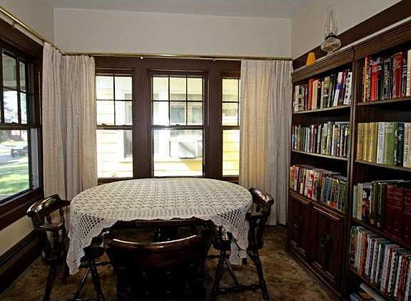 ARTS & CRAFTS MASTERPIECE! FIREPLACE WALL W/WINDOW SEAT, LEADED GLASS CABINETS & STAINED GLASS WINDOW. LIVING ROOM OPENS TO YEAR-ROUND SUNROOM. FORMAL DINING RM W/BOXED BEAM CEILING, GORGEOUS OAK WOODWORK, HARD WOOD UNDER SOME CARPET, PERIOD BATH! UPSTAIRS MASTER SUITE W/FULL BATH. BRICK PATIO, HUGE GARAGE W/STORAGE. BIG KITCHEN, LOADS OF OLD HOUSE CHARM! (Internet 5996090-8/4/2012)