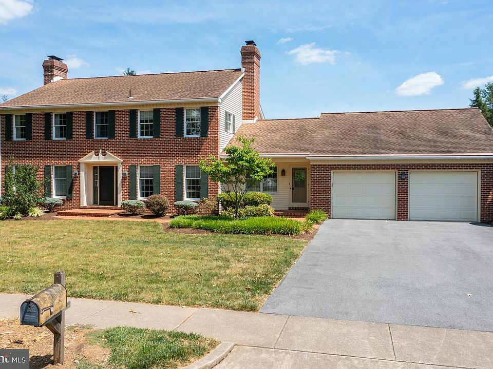 This custom built home, built by Frank Ferrara & Son builders, is a brick 2-story with 4 bedrooms and 2 1/2 baths in the desirable Wyomissing School District on a large, private lot! As you enter into the brick tiled foyer, the formal living room sits off to the left, with a beautiful wood burning fireplace and mantle, wainscoting, crown molding and lots of extra-large windows for natural light. The formal dining room comes with lovely wide plank hardwood flooring, crown molding and chair rail. The huge eat-in kitchen has a built-in custom dishwasher, cooktop with custom range hood and wall oven, and tons of custom cabinets, 2 pantry/storage closets, and lots of countertop space, as well as a great eating area which overlooks the large rear yard. The spacious family room has a brick wood burning fireplace, custom built-ins and sliders to the covered rear patio. The laundry is right down the hall and has a laundry sink and storage cabinets and there is a convenient powder room on this level as well. Upstairs, you will find a spacious primary ensuite with 3 closets including a large walk-in closet and bath with a stall shower and large vanity. There are three more spacious bedrooms each with a walk-in closet and a hall bath with double vanity and linen closet. The lower level is just waiting to be finished off for additional living space and has a wood burning fireplace. The rear yard has unobstructed views of the meadows below, is perfect for entertaining, and has a covered patio with skylights, professional landscaping and lots of room for family activities. There is an oversized 2-car attached garage with a direct entrance into the house and large driveway for off street parking. Close to Wyomissing Park, shopping and restaurants, you will be proud to call this Home!