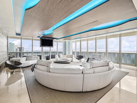 Truly UNIQUE Turnkey NE Corner Unit by well-known Interior Designer! 270 degrees direct Ocean Views surround this One-of-a-Kind Entertainment living room w/ floating ceiling, remote controlled i-player LED 3 color Kinetics lighting. It is the Most updated unit at Beach Club on market today with custom Designer details throughout, wood-paneled walls & marble flooring, Interlam wall panels, SMART system, electric shades, recess lighting, Roche Boboise furniture & much more! Primary Bedroom Suite has built-in furniture, his & hers dressing rooms, built-in walk-in closets, Remodeled kitchen w Subzero refrigerator & induction cooktop. 5-star resort-like amenities, a magnificent 2-story lobby entrance, security, 24-hour valet, 5 heated pools, 50.000 sq. ft. SPA & gym overlooking the Ocean.