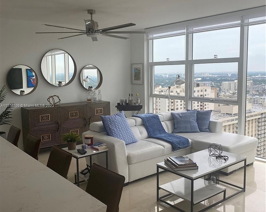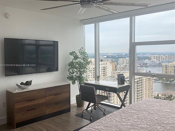 Available Immediately. Paradise living on Hallandale Beach, FL. Resort-style High Rise, available fully furnished and turnkey. Luxury building with 5 heated pools outdoor, bar/cate, hot tub at each pool. Building has 40K sq. fitness center and Spa and 24 HR concierge/valet/security. Covered assigned parking space. Unit has been updated including eat-in countertop kitchen, double sink bathroom, new floors in master bedroom. King-sized bed, queen sleeper sofa, 2 new T.V.'s, beautiful quartz countertops and double sink in bathroom. Breathtaking views. No balcony of sunset/city lights and intercoastal. Centrally located on Hallandale Beach, minutes from all major shopping, dining, Hollywood Boardwalk and 15 minutes to the Ft. Lauderdale airport.