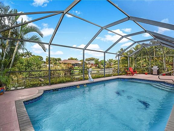 Perfect home for growing family in SW Cape Coral! This waterfront home is situated on a freshwater canal and offers over 1,600 sq ft of living space w/ a split bedroom floor plan, great room design, tile flooring throughout, lots of windows including large panel sliding systems & an arched window in the great room, elegant French door front entry, cathedral ceilings, and dual closets in master bedroom. You will love the outdoor living space this home has to offer-an extended screened rear lanai w/ massive pool deck, heated pool featuring a LED light system, under truss area, pool bath, fenced in backyard, and a wooden boat dock (perfect for fishing or launching a kayak/paddle board). Meticulously cared for and updated w/ a new a/c unit in April '19; new hurricane grade garage door, pool pump replaced, & new screens on pool cage in '16; renovated baths in '18 & '19; and landscaping updated & additions throughout all 9 years of ownership. Situated in a non-gated SW Cape Coral neighborhood w/ easy access to both the Midpoint Bridge & the South Cape Coral Bridge, plus just a short drive to Cape Harbour, Tarpon Point Marina, Four Mile Cove Eco Preserve, & the Cape Coral Yacht Club.