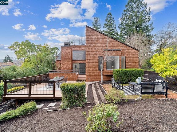 Captivating Tice Valley Sea Ranch Style Oasis! Step into a world of California charm with this stunning 3-bedroom, 2.5-bath masterpiece. Immerse yourself in the tranquility of an expansive backyard featuring a large deck, brick patio, and flourishing fruit trees, with the exciting option for additional yard expansion.This architectural gem boasts soaring 15-22 ft. ceilings in every room, creating an open and airy ambiance complemented by 3 large skylights and panoramic windows that bathe the space in natural light. Cozy up by one of the two fireplaces, and admire the beauty of bamboo floors throughout the public rooms.Celebrate joyous occasions in the formal dining room with it’s 22’ ceiling, clerestory windows and wet bar, then afterwards adjourn to the open plan living room with access to the back yard. The heart of this home is a large, updated kitchen complete with an island, bay windowed breakfast area, and adjoining family room, providing a perfect space for entertaining. The extra-large newly updated primary bath offers a luxurious retreat with back-to-back vanities. Don’t miss the extra large 660 sq.ft. garage with 15’ ceiling, built in storage cabinets, and work bench. Tesla Solar Power. in the Walnut Creek/Acalanes School Disrict. 2 Blocks from Safeway & CVS.