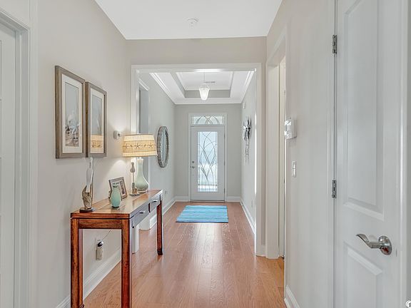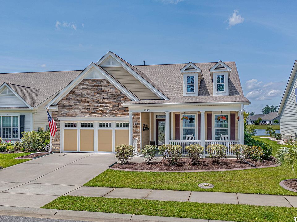 Welcome to this stunning coastal single story WATERFRONT home located in the desirable active adult community of Cresswind in Market Common. Coastal living at its best begins the moment you enter this one-level home. Everyone loves a room with a view, but this home delivers fabulous water views from not only the living area but the dining area, the Four Season Room, and the Master Bedroom as well. This artfully elegant property features an open floor plan that showcases these beautiful water views. Several walls are accented with coastal shiplap, enhancing the coastal living flair of this home. Light wooden floors keep this home light and airy and all the windows provide much natural light. The gas fireplace adds a lovely focal point to the living space, as does ample recessed lighting on dimmers. There is a generous area for your dining table and sideboard. The kitchen highlights include stainless appliances, granite counters and a breakfast bar that comfortably seats four chairs. The large pantry is nestled in the corner equipped with lots of shelving. The backsplash is a blue-green multi-tone tile, keeping the coastal theme flowing. Open the sunny Four Seasons Room door, and the water view is divine. Appointed with a Daiken mini-split, this room offers heat and air conditioning and full windows rated for 150 mph winds for added security. The flooring in this room is LVP, and the two ceiling fans keeps the room comfortable. The Master Bedroom offers crown molding, soft carpeting, a tray- boxed ceiling and a ceiling fan. Master Bath features include a double vanity, a jetted garden tub, a separate shower with a tile enclosure, and a large walk-in closet. Two guest bedrooms are located in the front of the home and separated by a guest bathroom. One of the bedrooms has been transformed to an office, which includes a large bookshelf that converts to a queen size bed, a built-in office desk and cabinets and a closet. The laundry room is sizable with tile floors and custom cabinets for easy storage. The 2-car attached garage offers a tankless Rinnai hot water heater, aluminum hurricane shutters, overhead storage racks, and pull down stairs with plenty of storage in the attic. The Seller has installed a whole-house surge protector and an ultraviolet air filtration system. The Seller has also installed a VERSA LIFT, an electric system that operates by a remote that drops down from the attic, aiding in safety and securely bringing your items down from the attic. The patio beyond the Four Season Room is epoxied and houses the grill. Landscaping in the back of the property includes 2 stately palm trees, pampas grasses and a crepe myrtle. All garden beds, front and back are attractively finished with curbscaping. The exterior of the house was painted in June 2023. New HVAC SYSTEM BEING INSTALLED IN AUGUST 2023. The seller has lovingly cared for this home and will miss it. Cresswind offers a 12,000 square-foot Amenity Center that features an incredible array of activities. There is a resort-style community pool, pickleball and tennis courts, an amphitheater, bocce ball and a state-of-the-art fitness center. Hop in your golf cart and drive to the beach in just minutes or go shopping in the beautiful boutiques in Market Common. Area businesses include: Grand 14 Theater, breweries, Barnes and Noble, Orvis, and a plethora of restaurants. Walking and bike trails abound in the Market Common, and the drive to the Myrtle Beach International Airport is approximately 10 minutes. There are dog parks, bowling center and an Aero Par 3 Golf Course, an 84,000 square foot Veteran's Clinic, Doctor's Care and hospital emergency room, along with a Food Lion, Publix and Walmart, all at your disposal. The beautiful community of Cresswind, this gorgeous residence and the proximity to the beach makes this property not just 5 stars but 10 plus stars. Start living the easy Market Common Lifestyle today here at 1830 Suncrest Drive in Sunny Myrtle Beach.
