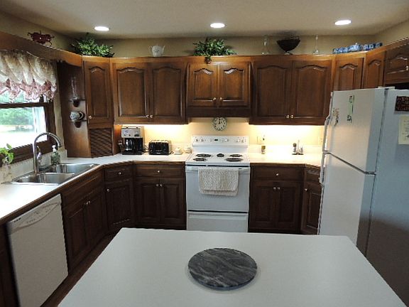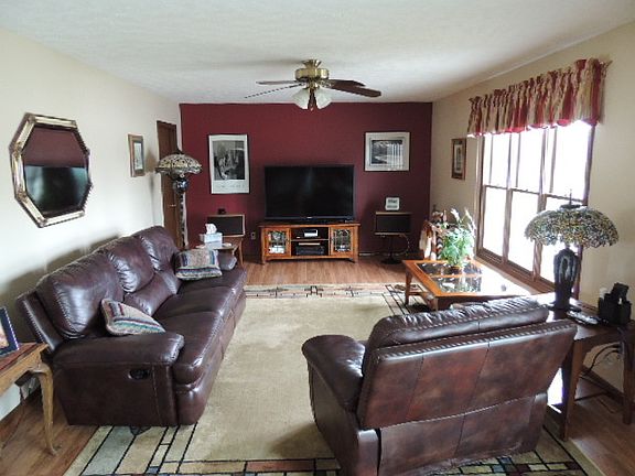 Home Features: Nice lawn. All windows double pane tilt in, double track storm windows. TV tower with antenna and new rotor. Ceiling fans in living room, family room, master bedroom, and second bedroom. Attic pull down stairs in garage. Flooring, lighting, shelves in the attic for storage. 8 x 10 front porch, 12 x 15 deck and railing, all of maintenance free PVC. Cement patio 12 x 20. Rear deck has 11 x 17 powered Sunsetter Awning, with LED lighting and wind sensor, with winter cover and side shield. Outdoor Bose speakers on deck. Hot Springs Landmark Spa for 6 people. Many closets and lots of storage. Closet organizers in all bedroom closets. Programmable Wi-Fi thermostat. Laundry on main floor. Many kitchen cabinets, with island, pull out shelves in all lower cabinets. Large kitchen pantry. Very nice window treatments throughout the home. Quiet Giant dual whole house fans. R60 insulation in attic. 2 stage high efficiency gas furnace, with high efficiency heat pump. Whole house natural gas generator for emergency power. Nice shed, 10 x 12 with cement slab with ramp at door, barn style with interior loft for extra storage, insulated with 50A electrical service, lights and receptacles, and electric baseboard heat, insulated metal roll up door, finished with vinyl siding and shingles that match the house. Powered exhaust fan in Attic. This home features a very open floor plan, with the back facing south, and plenty of glass to let the sunshine in during the winter. The house has a very warm feeling. This home is very clean. You can move right in with no work. Exterior is totally maintenance free except for man door into garage. Very energy efficient. Water well with very good water. New laminate flooring in main living area. All appliances included. Basement: The finished basement has 3 areas in an open L shape. Area 1 is 12 x 21 with recessed lighting. Area 2 is 15 x 17-7 with overhead lighting on a dimmer. Area 3 is 14-5 x 22 with recessed lighting and wall washer lights that are on a dimmer. The finished basement has mostly full 8 high drywall textured ceilings, 7 under ductwork, two finished closets plus extra storage. The basement has a doorbell, 3 telephone outlets, cable outlets, Audio and video to the upstairs, and plenty of electrical outlets. The basement has all wood trim, with some oak, commercial grade carpet with heavy pad underneath. All basement windows are glass block for security, insulation, and privacy. The basement has a large open stairway that makes it easy to get any size of furniture down. Basement de-watering system. The basement is Dry! Gas vented fireplace with blower and remote control, with custom built oak cabinetry. Solid oak Olhausen slate pool table, with custom built oak cue/accessory cabinet, and all pool accessories. Two 36 doors lead to the unfinished side of the basement, which is 750 square feet, and includes a nice workbench. Water softener, and whole house water filters.