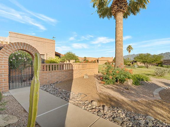 A glorious sanctuary for a complete new lifestyle among the majestic Santa Rita MTN's. Snuggled into a highly desired neighborhood with a wrap around patio, you will indulge with the wondrous sites! Nestled on a corner lot for more open privacy, this townhome is perfect! Just look at the remodeled kitchen with quartz C-tops, high quality SS appliances, & custom cabinetry. The tile flooring is ALL UNIFORM throughout. Ease into a relaxed state with an extraordinary wet bar for entertaining & a cozy gas fireplace. The Main suite has a separate shower, soaker tub, dual vanities, & spacious walk in closet. The extra bedroom can be utilized as an office or den. HVAC has been replaced. Oversized garage with extra storage space & workbench. The roof and skylights are brand new! Look no further!