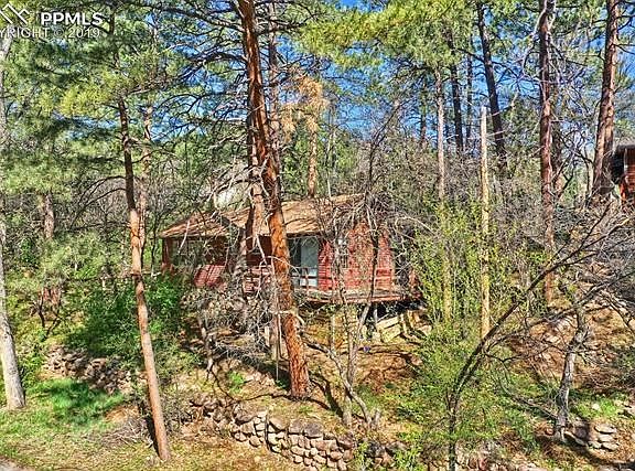 Huge lot in desirable and charming Cheyenne Canon,large potential and upside for Buyer, almost 1/4 of an acre (9000 sq ft), with charming cabin built in 1909.Property is an amazing location in the Canon, directly across from POE campground with views of Cheyenne Creek and Mount Cutler. Property is being sold AS IS. The only heat source is a wood burning fireplace. A new sewer line has been run and the home is structurally sound. STRICTLY AS IS.