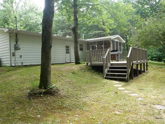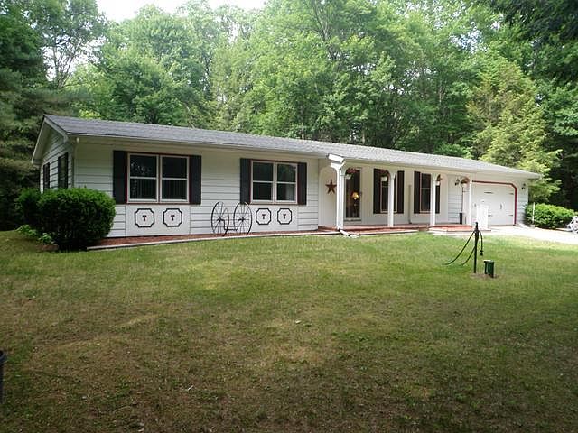 Nice Ranch home located on 10 wooded acres home offers great floor plan 2 could be 3 bedrooms ,2 full baths full basement partially finished, 12 x 12 screen porch plus deck overlooking the woods,also has 2.5 car attached garage plus extra 28 x 32 garage, great hunting area or just your own woods to walk or play in. City water at road.