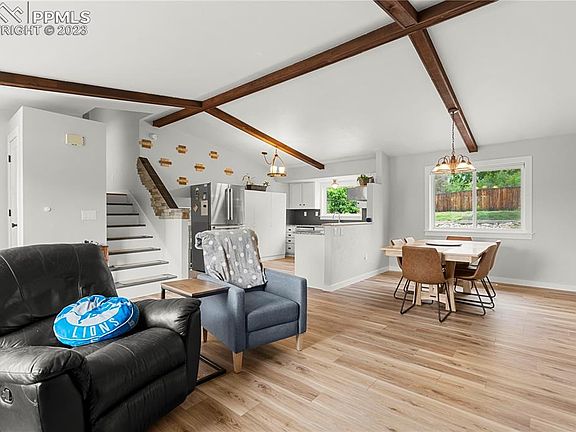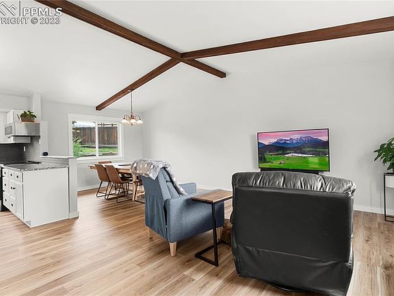 Welcome to this stunning home where pride in home ownership shines through, evident in the impeccable condition and thoughtful updates throughout. The updated exterior of the home features a stucco finish that is only 2 years old, along with a new mid-century modern garage door with a new wall mount garage door opener inside, new gutters, new windows, new exterior doors, providing both durability, energy efficiency, and visual appeal. As you enter, you'll be delighted by the bright and open concept, enhanced by new LVP flooring that spans most of the home, creating a seamless and stylish aesthetic. The main floor features a living room, dining room, and a newly remodeled kitchen. The kitchen is a true gem, boasting beautiful granite countertops, complemented by a porcelain hexagon backsplash. The kitchen also offers a new sink and faucet and newer appliances, including an induction stove top and range, providing both functionality and modernity. The lower level of the home features a cozy family room with a fireplace, creating a warm and inviting atmosphere. From here, there is direct access to the large backyard, perfect for outdoor entertaining and relaxation. You can catch views of Pikes Peak and the Front Range from inside and outside. The big lot provides ample space for various activities and possibilities. The laundry room has been updated and includes a half bath, offering convenience and practicality. It also houses newer high-end washer and dryer. Upstairs, you'll find three bedrooms, each of which has been updated with LVP flooring, three-panel doors, fresh paint, and three-panel frosted glass closet doors. The primary bedroom boasts a fully updated 3/4 bath, complete with a rainfall shower head, adding a touch of luxury to your daily routine. The full-bath upstairs features a vanity and bathtub with new surface refinishing. Nestled in a quiet neighborhood close to UCCS, this home offers the perfect balance of tranquility and accessibility.