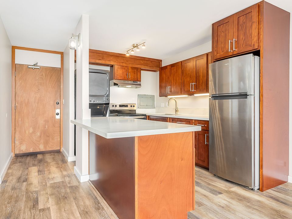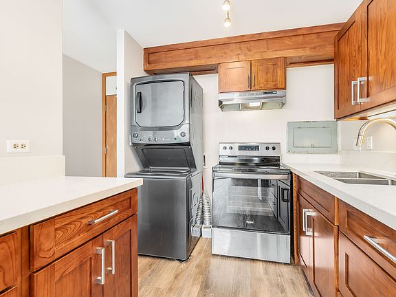 Experience serene lakefront living in this 1-bedroom, 1-bathroom unit with 1 assigned parking stall at Kemoo by the Lake! Situated on a higher floor, this mostly updated home offers beautiful views of Lake Wilson. The kitchen features quartz countertops, wood shaker cabinets, and a stainless steel range and refrigerator. The living areas are finished with luxury vinyl plank flooring, and the unit comes complete with a newer washer and dryer for your convenience. You'll also enjoy a spacious walk-in closet and window A/C units for added comfort. Rent includes water and sewer. Tenant is responsible for electricity, internet, and cable. The first group showing will be held on Saturday, 9/13/25. Sorry no pets.