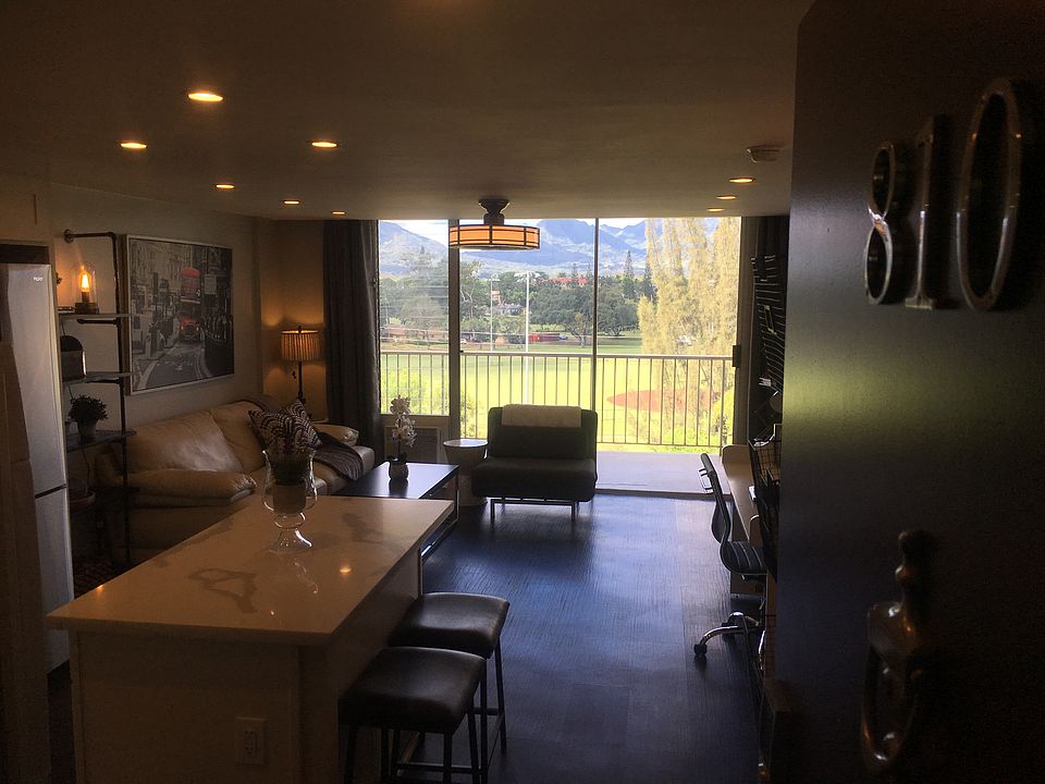 Modern 481 sqft urban studio apartment directly across from Schofield Barracks in Wahiawa with a generous 98 sqft lanai featuring wide mountain VIEWS and picturesque sunsets. EASY on-base and freeway access. SPACIOUS open kitchen with Carrara style quartz counters, subway tile walls, and eat-in island. CONVENIENCE with in-unit washer and dryer plus full suite of appliances including a full-size refrigerator freezer, convection microwave oven, range, and dishwasher. Hotel quality bathroom with floor-to-ceiling quartz panel walls, his & her double sinks and glass shower with tub in a LUXURY urban style. Water, sewer, trash, and pest control paid by owner; tenant pays for electricity and cable/internet/telephone if desired. No smoking, no pets, unfurnished (note: wall bed not included), 1 assigned uncovered parking stall, renter's insurance required, one-year lease, proof of income/credit and background check fee to be paid by each adult applicant.