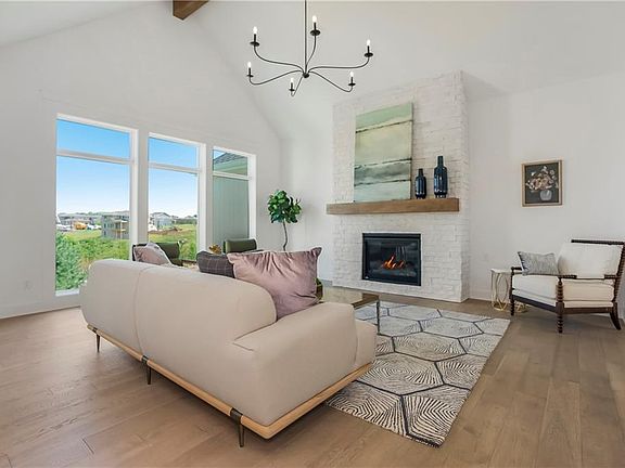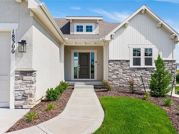 “The Sonoma” is an award-winning reverse 1.5 story plan by Rodrock Homes. Spectacular Open Floor Plan, Great Room with a Vaulted Ceiling, Wall of Windows across the back allowing an abundance of natural light in. Gourmet Kitchen features a Large Island, Walk-In Pantry and drop zone off the garage. There is a Guest Bedroom behind the kitchen with a private bath. The primary bedroom features a vaulted ceiling that leads into a Luxury Bathroom with dual vanities, a walk-in shower, and a huge closet with a built-in mirror. A covered deck is located off the dining area, perfect for morning coffee. The finished Lower Level has a large living area with walk-up bar, two additional bedrooms, and a full bath. This home sits beautifully at the end of a cul-de-sac, creating a private retreat! Award-winning Blue Valley Schools are nearby.