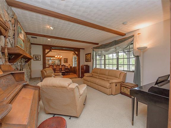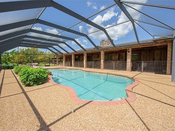 Private farmhouse oasis sitting on 3 Folios = 17+ ac income-producing avocado grove in Redland, FL near fruit & spice park! This custom CBS home, covered in cedar, features a guest/house & offers privacy, & resort-style living. Includes formal living/dining space, spacious kitchen, two fireplaces, & master suite. Four sliding doors open to an 1,860 sq ft screened pool w/ waterfall, sun shelf, & 61x13 patio with bar/grill—great for hosting 100+ guests! Wide porches, 1,335 sq ft carport, & 4,000 sq ft, 20-ft-high tool shed with 1,000 sq ft overhang—ideal for equipment& toys. Property is fully fenced with security cameras onsite. Diesel irrigation & tropical fruit trees: lychee, papaya, banana, carambola, & aloe. Built beyond Miami-Dade code. Zoned to build 2 more homes.