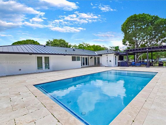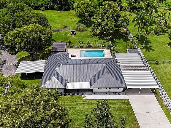 Fully updated, and privately nestled on 1/2 acre in Southwest Ranches. Located on a quiet cul-de-sac. This modern home features 5 en-suite bedrooms, an office, 5.5 bathrooms, beautiful marble flooring throughout, a new metal roof, impact windows & doors. All bedrooms have individual ductless mini-split AC units and impact doors. The office has its own private full bathroom that can be used as a second primary bedroom or media room, and has access to the pool. Outside the backyard features a new saltwater pool (2022), pergola, and a summer kitchen, perfect for entertaining. NO HOA! Enjoy peaceful living in one of Southwest Ranches' most desirable locations. Available for sale! Schedule your showing today!