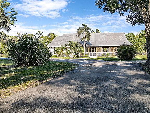 Imagine the possibilities! This Jupiter Farms beauty, situated on the north side of Indiantown Road has nearly 4 1/2 fully-fenced acres (4.48) and offers 5 bedroom and 3 bathrooms. This pool home was recently renovated and offers an open floor plan amongst 2900 square feet of interior living space. Entertaining in this home will be a breeze as it is designed around a large, open kitchen with a great deal of counter & cabinet space and high-end appliances. The family room is spacious and has 3 sets of french doors that open to the covered front porch. The living room features rich wood beams and an electric fireplace to create a very cozy atmosphere. In addition, there are 3 bedrooms, a full bathroom and a laundry room downstairs. The primary bedroom is located on the 2nd f with views of the expansive acreage. The primary bathroom has been nicely updated with a large shower, dual vanity, and a separate water closet.